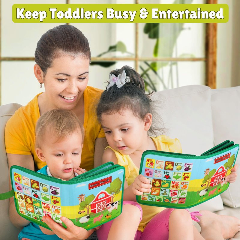 Quanquer Toddler Busy Board Montessori Toys for 1 2 3 4 Year Old - Farm Busy Book Educational Learning Sensory Toys for Boys Girls - Christmas Birthday Gifts for Toddlers Travel Toys for Airplane Car