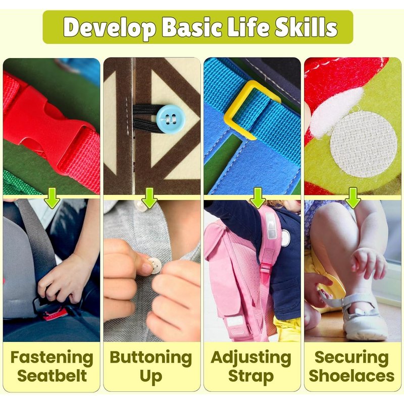 - SAFE MATERIAL FOR TODDLERS - Our toddler educational busy board is crafted with care, prioritizing your child's safety and comfort. Made from soft, skin-friendly materials, this busy book offers a gentle touch perfect for little hands. With durable stitching and robust construction, it stands up to the demands of active play, ensuring lasting enjoyment. Invest in a product that combines quality and resilience, giving your child a reliable and enjoyable learning experience
