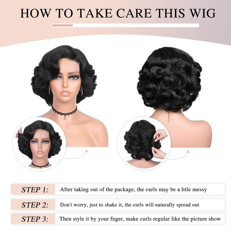 - 【Curly Bob Wig Material】Our wig is made by 100% high-temperature heat resistant synthetic fiber. Every wig is handmade by skillful workers, touched soft and easy to take care, look natural and realistic as well as long lasting.