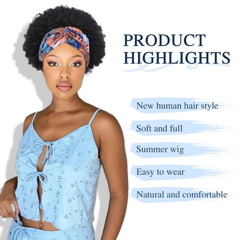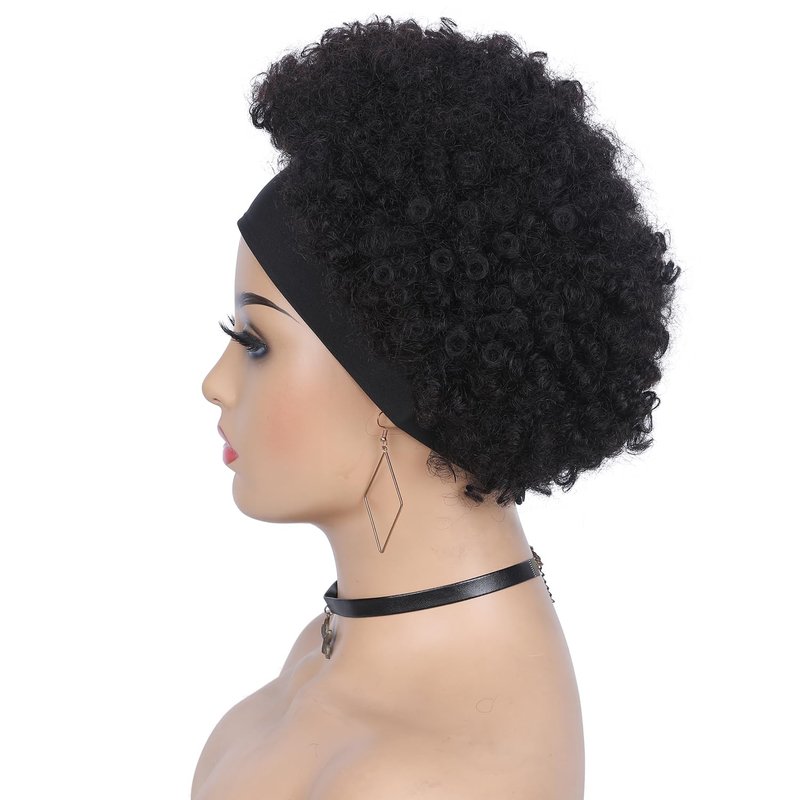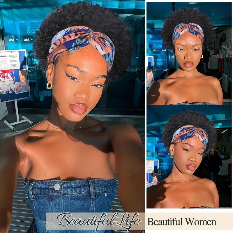 Quantum Love Short Human Hair Wigs Afro Curly Human Hair Headband Wig for Black Women Afro Puff Natural Black Headband Glueless Human Hair Wigs