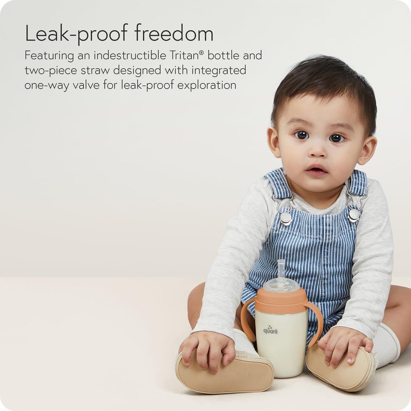Quark BuubiBottle Sip Toddler Sippy Cup with Handles & Straw Transition Sippy Cups for Baby - Easy-Clean Wide Mouth Opening, Dishwasher Safe - BPA-Free, PVC-Free, Toxin-Free - 8 Oz, Orange