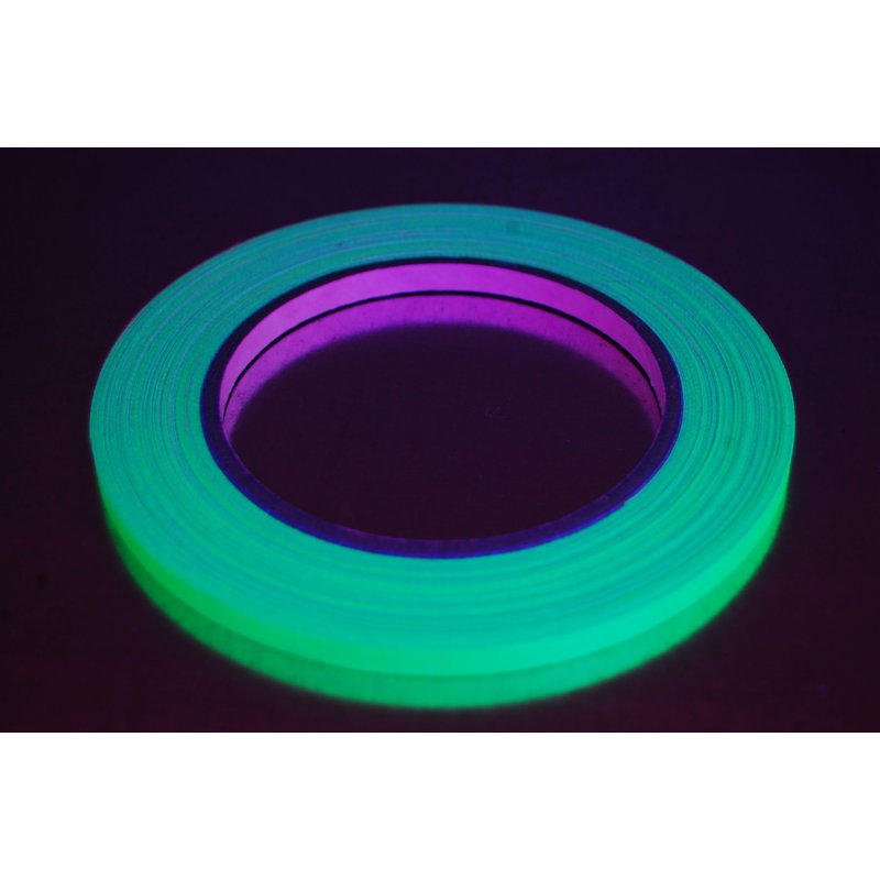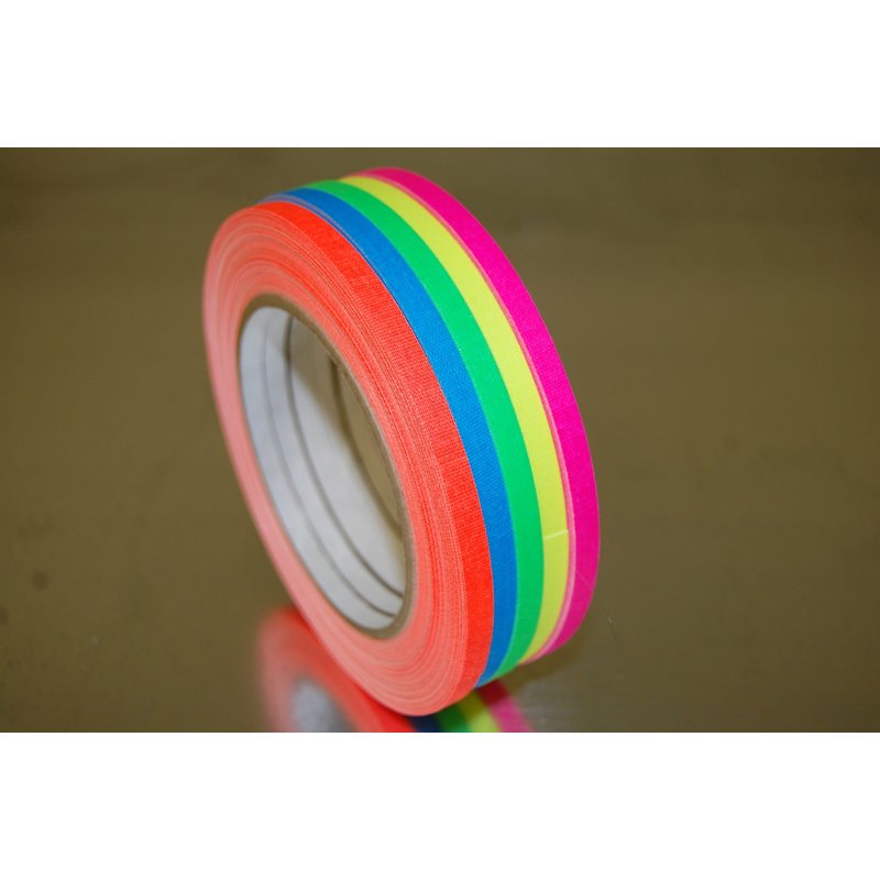 This fluorescent half inch blacklight responsive gaffer tape is the perfect finishing touch to make your blacklight party complete! This tape is specially designed specifically for use in blacklight environments, so you only get the absolute best blacklight effects for your special event. Select from 5 mind blowing colors and mix and match any way you please. Whether you need a little or a lot, we've got you covered! Please note- TAPE IS BLACKLIGHT ONLY. IT DOES NOT GLOW IN THE DARK. Gaffer tape is a high quality vinyl-impregnated cloth with a non-reflective matte finish and excellent adhesion. Clean removal, abrasion and water resistant. Easily torn into smaller strips by hand if needed. It can be removed without leaving a sticky gummy residue so your walls and furnishings are unscathed after the party.