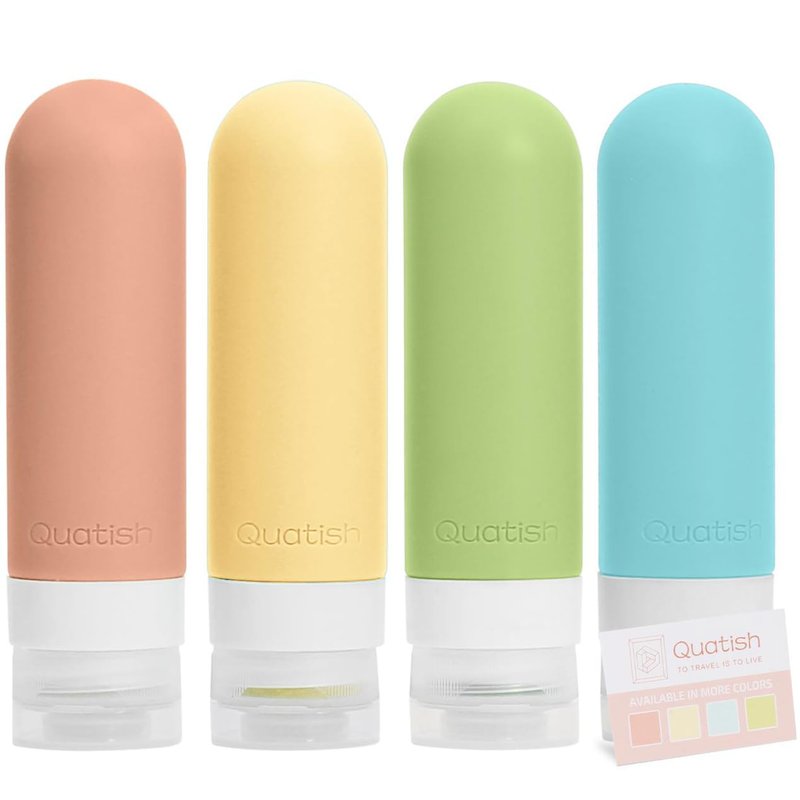 Quatish Travel Bottles for Toiletries, 4 Pack Leak Proof Travel Size Containers, BPA Free Silicone Travel Shampoo and Conditioner Bottles Tsa Approved, 3 oz Travel Size Bottles for Cosmetic, Lotion