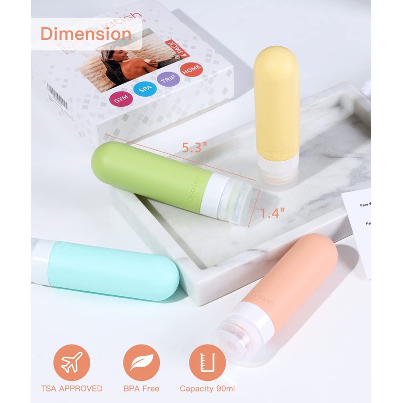 Quatish Travel Size Bottles 6 Pack, Leak Proof Travel Containers for Toiletries, BPA Free Silicone Travel Shampoo and Conditioner Bottles Tsa Approved, 3 oz Travel Essentials Toiletries