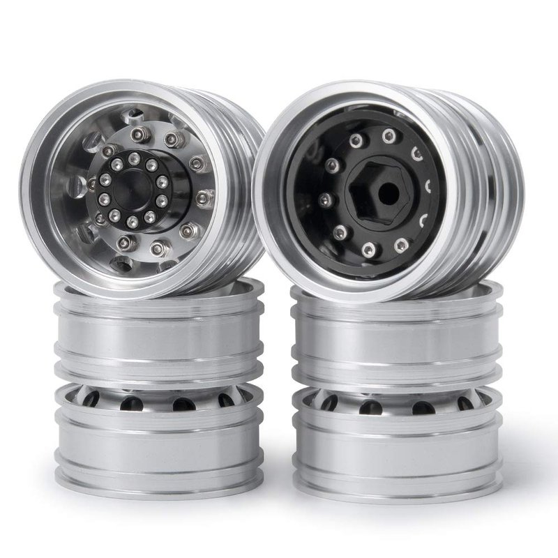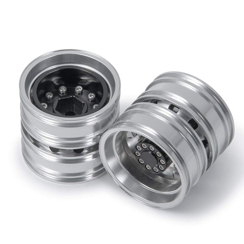 QUE-T 4pcs Aluminum Rear Wheel Hubs Rims for 1/14 Tamiya Tractor Climbing Trailer RC Car Upgrade Parts