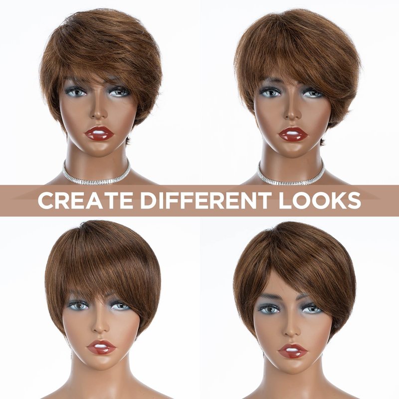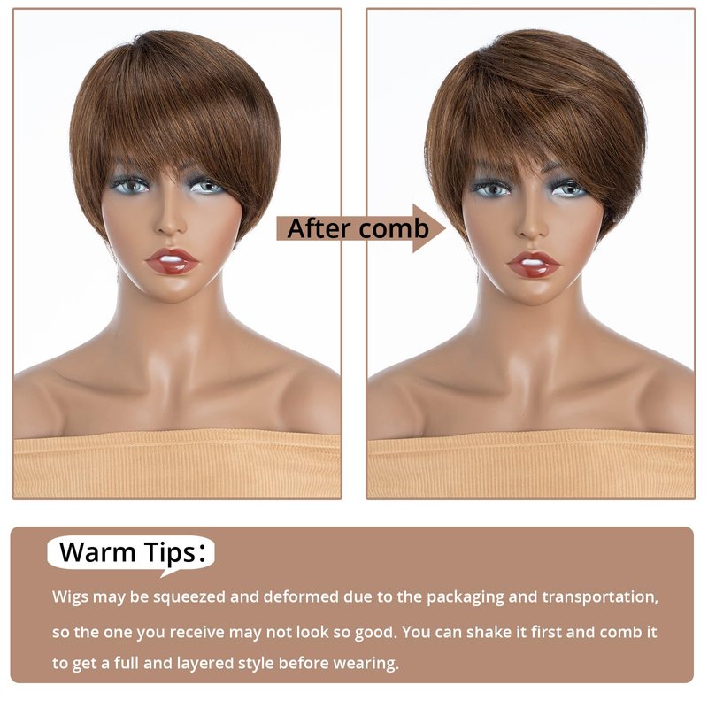 - Wig Advantages: With a full and thick style, this pixie cut wig features bangs that are long enough to be styled in various ways. You can adjust the position of the bangs by yourself,try styling it yourself or go to a hairstylist to get the exact look you want. The short black wig will make you feel more beautiful and confident.