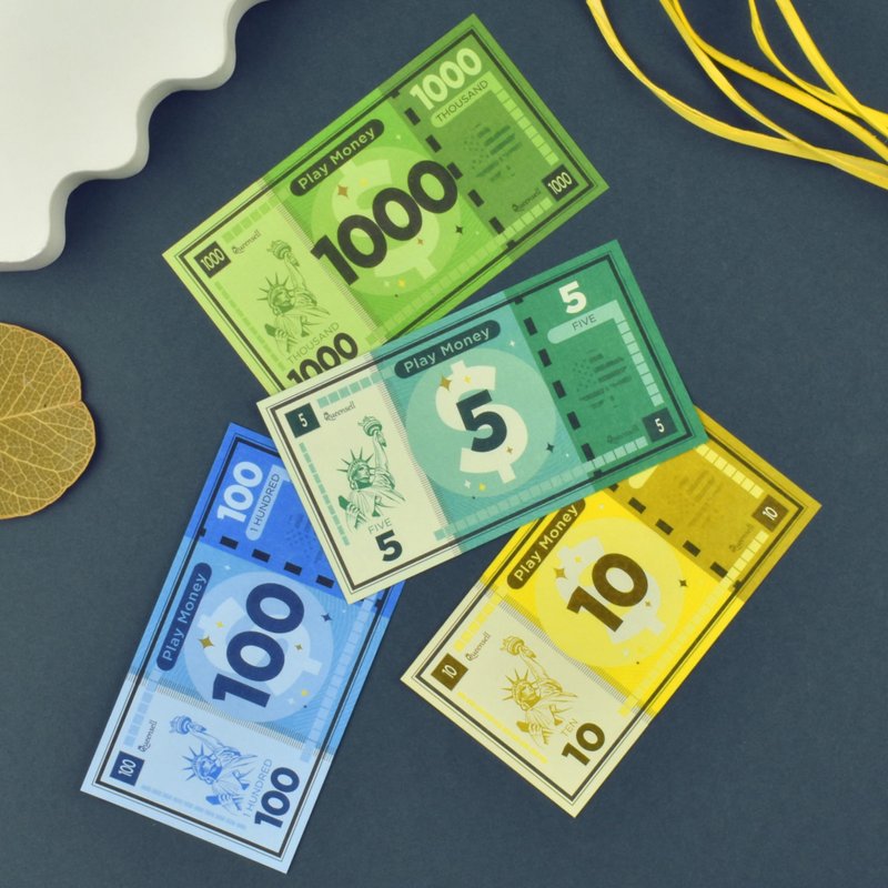 This is a set of Play money for Board games or just for playing. It's also great for educational purposes, helping learn about paper money in a fun and engaging way. Whether you're a filmmaker in need of play money or a parent looking for toy money, our selection of prop money and play money have you covered.