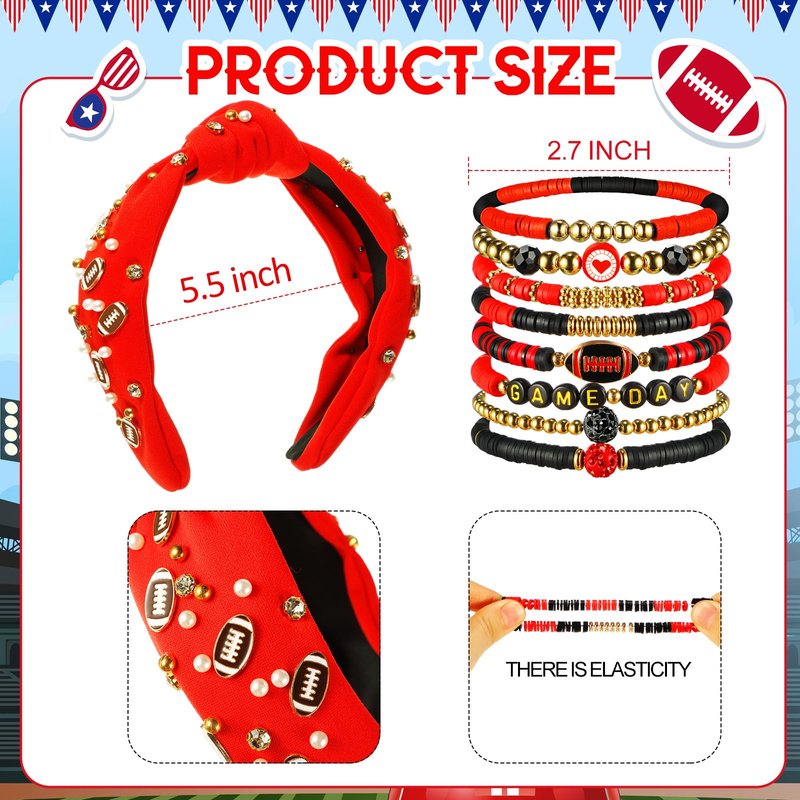 • Game Day Accessory Set: you will receive 2 game day themed accessories, including 1 game day football knotted headband and 8 beaded football stretch bracelets; Cheer for your favorite football team by wearing these charming football jewelry accessories