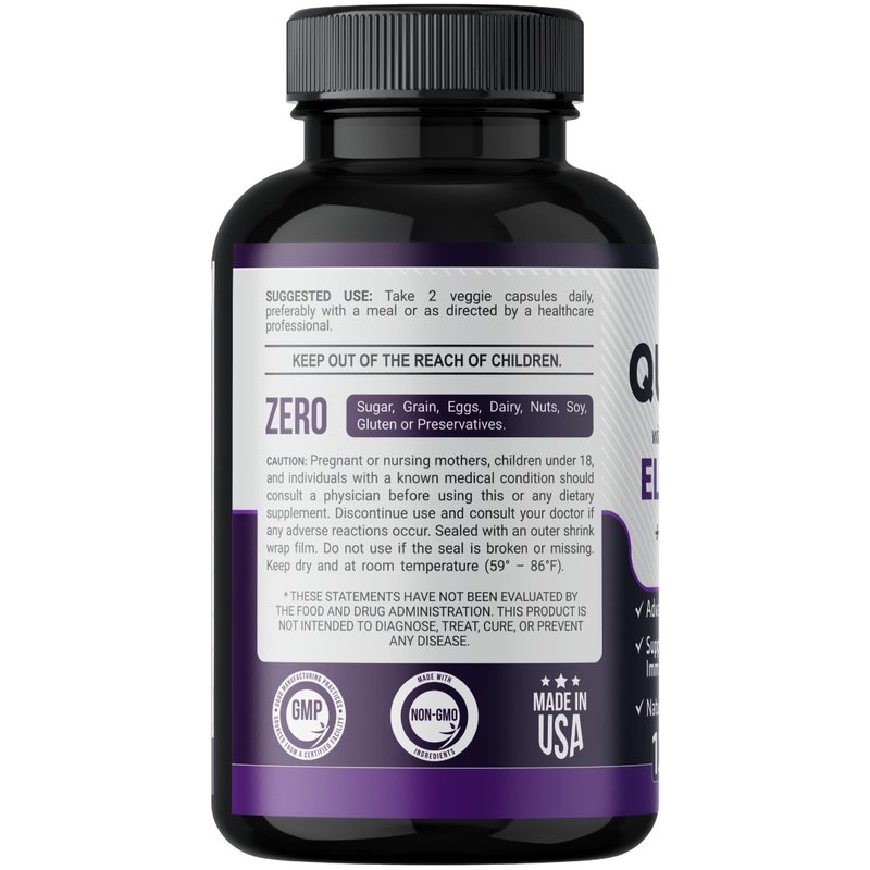 - ✔️THE KEY BENEFITS:*Quercetin with bromelain + Black Elderberry supports healthy aging, helps to reduce the damage and irritation caused by free radicals, helps promote a normal respiratory function, helps to fuel the immune system, helps enhance the absorption of zinc.* Quercetin + bromelain, two plant extracts that have been shown to support the immune system.*