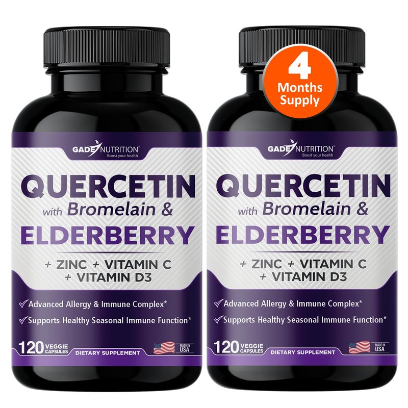 - ✔️A POTENT COMBINATION TO BOOST THE IMMUNE SYSTEM.* Quercetin Supplements by Gade Nutrition is made with the finest ingredients including a proprietary blend of Quercetin, Bromelain, Sambucus Elderberry, Vitamin C, D, and Zinc. Quercetin is a flavonoid (plant pigment) naturally found in fruits and vegetables. It is found in many foods, such as red wine, onions, green tea, apples, berries, and more. It is known for its Anti-oxidant Properties.*