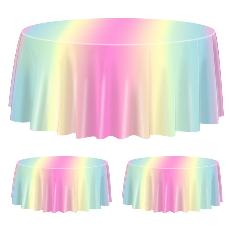 3 Pcs Pastel Rainbow Tablecloths for Round Table, 84x84''