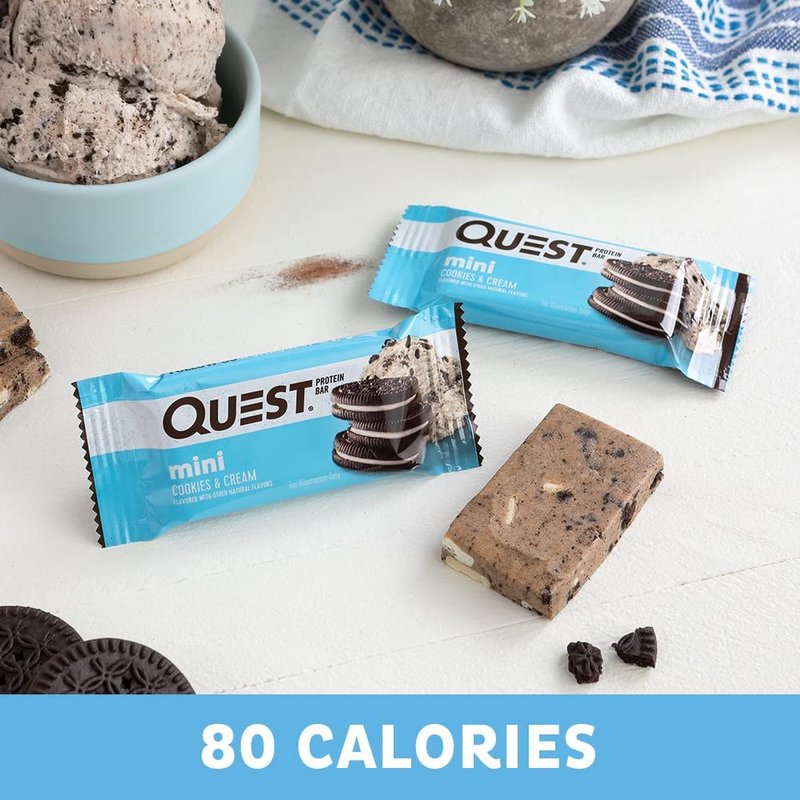 - QUEST MINI PROTEIN BARS. It’s way bigger than a protein bar. It’s a Quest. These chewy and tasty protein bars have the taste you look for in a protein bar.