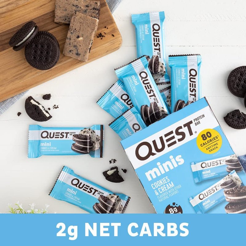 Quest Nutrition Mini Cookies & Cream Protein Bars, High Protein, Low Carb, Keto Friendly, 14 Count