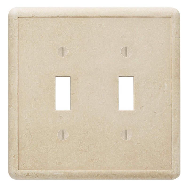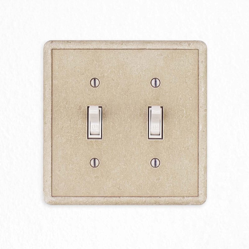 Questech Decor Double Toggle Light Switch Cover, 2-Gang Electrical Wall Plate, Double Switch Standard Size Receptacle Cover, Decorative Tumbled Texture, Travertine
