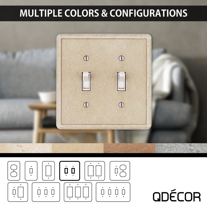 - MULTIPLE CONFIGURATIONS: Available in multiple configurations including single, double, triple and quad switches and combinations. Finishes include travertine, sand, noche and grey