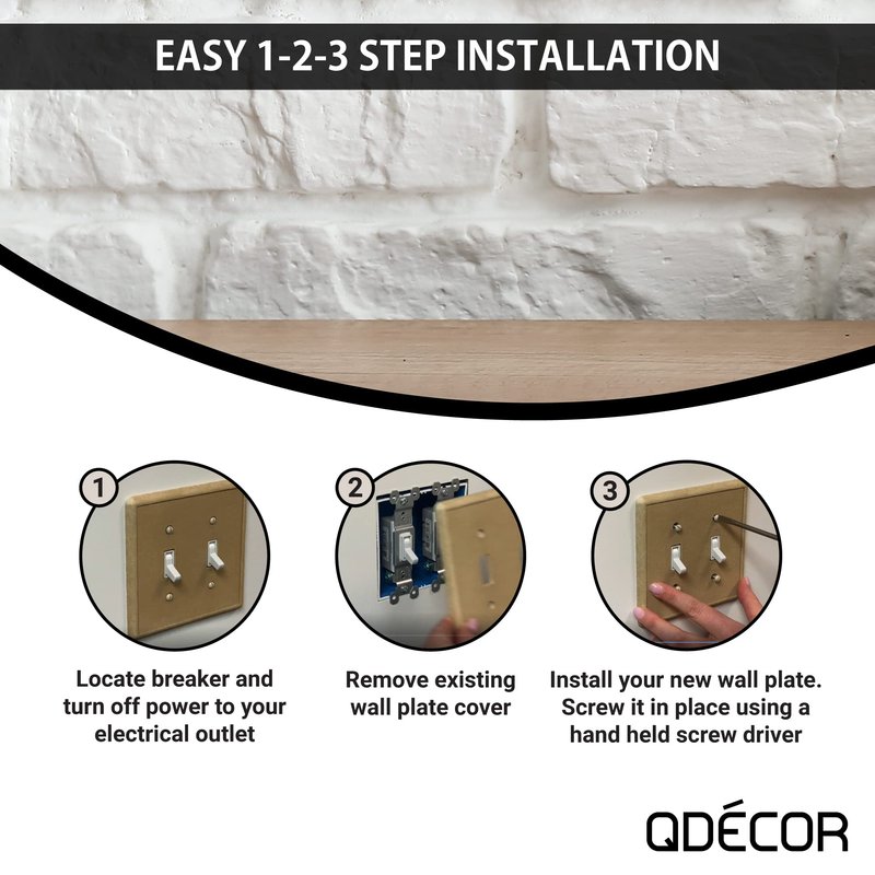 Dive into the modern elegance of home decor with Questech Decor's Tumbled Texture stone collection, embodying the pinnacle of contemporary design with our decorative electrical outlet and switch plate covers. Made in the USA, these pieces are not just accessories but essential elements to enhance the aesthetic appeal of any space. Our selection of outlet covers and light switch plates features a palette of modern finishes, including grey, noche, sand, and travertine, meticulously chosen to complement your sophisticated home environment. They are the perfect match for natural stone tiles and countertops, adding a refined touch to your interior design scheme. Designed with the modern homeowner in mind, these wall plates offer effortless installation, making them ideal for both renovation projects and DIY enhancements. With configurations ranging from single toggle and duplex to decorator GFCI and smart outlet-compatible designs, our collection meets a wide array of electrical requirements, ensuring compatibility with contemporary smart home devices. Incorporating cutting-edge Q-Seal technology, our switch plates are engineered for durability, boasting a surface that resists scratches and stains. This innovation ensures longevity and ease of maintenance, particularly in high-traffic areas like kitchens and bathrooms. The lightweight composite material blends high-quality stone and metal with advanced polymers and ceramics, setting a new standard for design and functionality in home decor. Elevate your living space with Questech Decor's selection of outlet covers and electrical wall plates, where modern functionality meets design excellence, offering a sophisticated finishing touch to your home's interior.