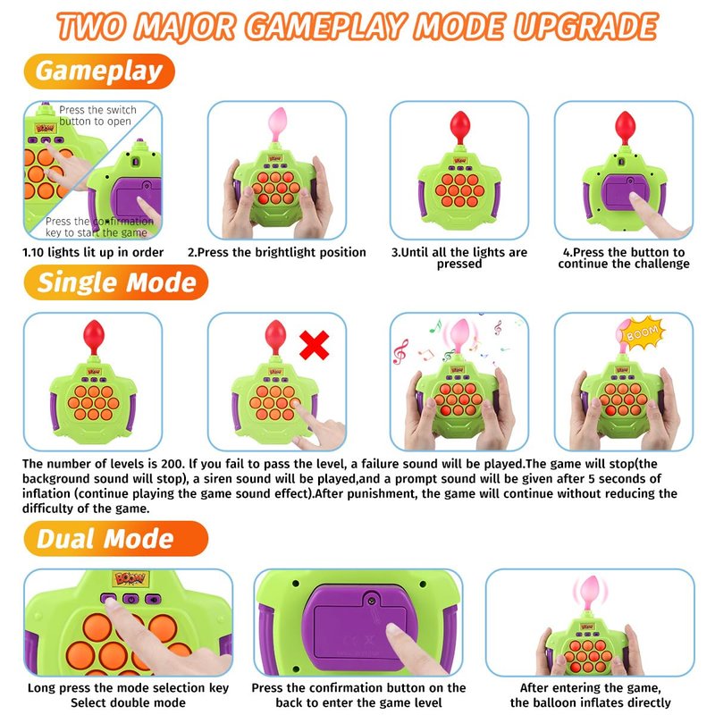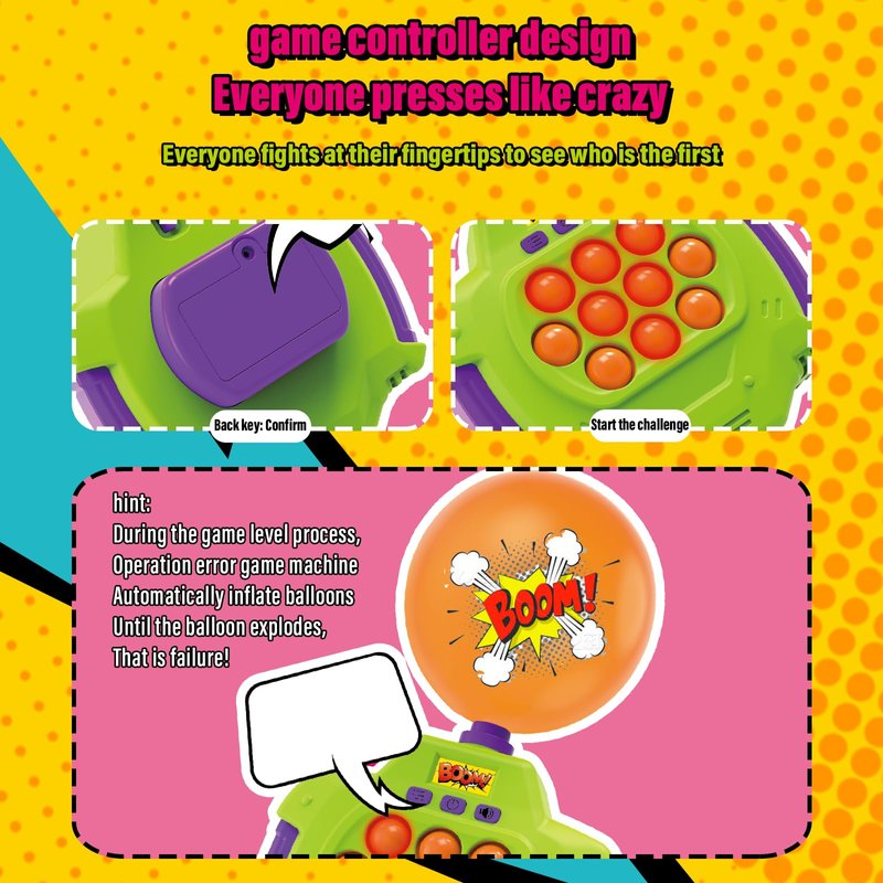 Quick Push Pop Game It Fidget Toys Pro with Balloon, Handheld Game Fast Puzzle Game Machine, Squeeze Poppet Sensory Fast Push Bubble Toy for Parties, Challenges and Trickery (Fast Push Game)