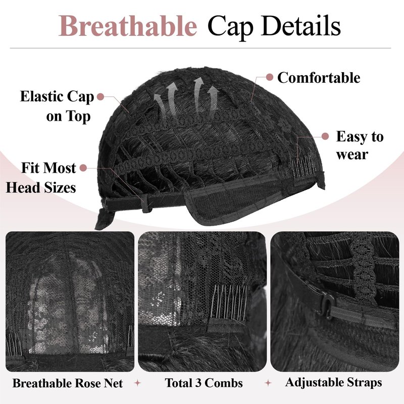 - 【Average Cap Size】Medium size cap(22-22.5 inch) with 3 combs around and two adjustable straps at the back, can fit most head sizes well, soft and breathable cap is more comfortable to wear and take off.