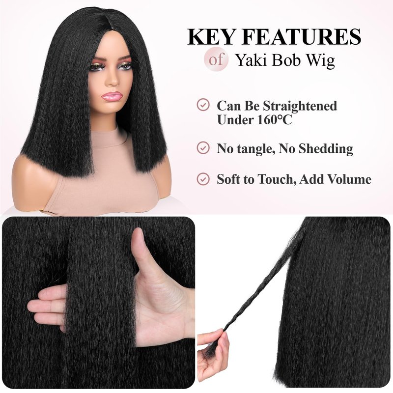 - 【Yaki Hair Texture】The kinky straight bob hair are made of imported premium synthetic fiber, lightweight, shows good texture and more realistic hair looking, just like your own hair.The hair is super soft, doesn't shed, and is easy to throw on.