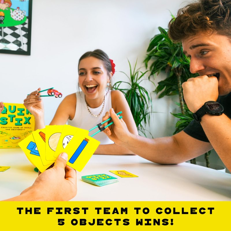 Introducing Quick Stix, a unique and exciting game that brings a new twist to family game nights. This game combines the thrill of a card game with the challenge of using chopsticks, creating a fun and engaging experience for players of all ages. With 40 objects and 40 picture cards, Quick Stix offers a wide variety of challenges that keep everyone on their toes. It's not just about winning, it's about having fun and creating memorable moments with your loved ones. Whether it's a casual get-together or a festive holiday gathering, Quick Stix is sure to be a hit.