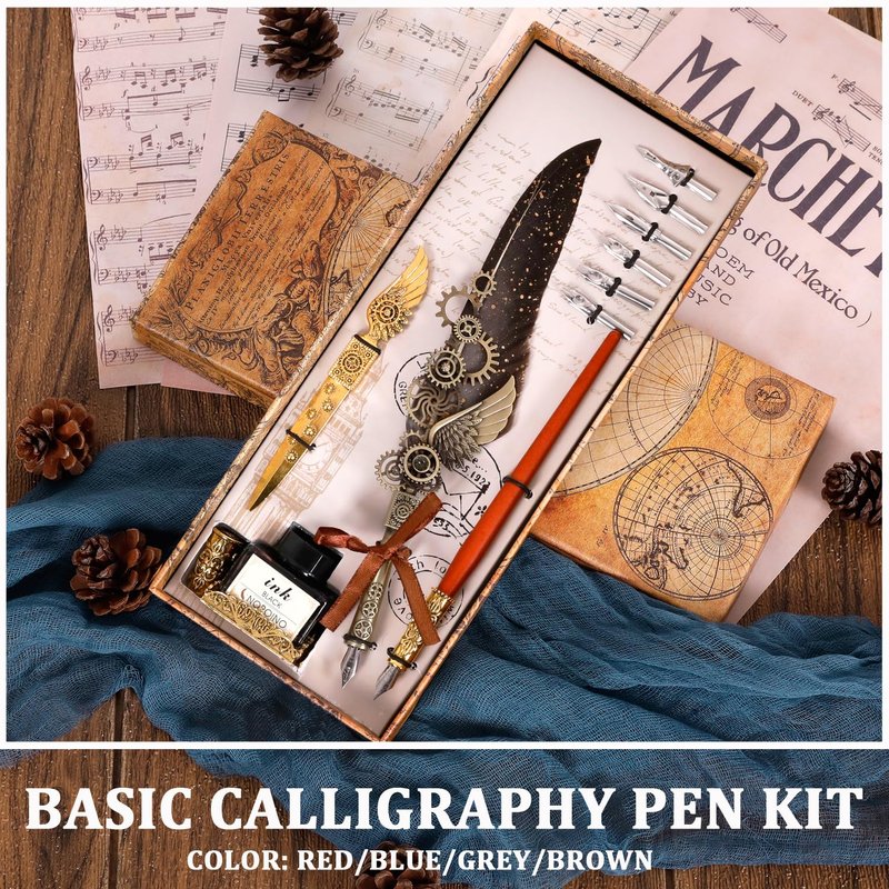 - 【Decent Gift Set】This calligraphy pen set is suitable for beginners and calligraphy lovers, it is a fashionable and luxurious gift for family/colleagues/friends/children on Valentine's Day/Thanksgiving/Mother's Day/Birthday and other festivals. The feather pen can also be used as a signature pen for meetings/parties, retro solemn, showing the owner's taste. The calligraphy set includes 1*quill pen, 1*wooden pen, 1*pen holder, 1*letter opener, 6*nib, 1*vintage box.