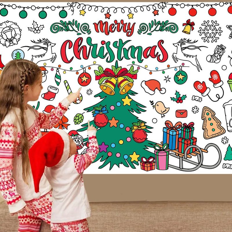 - Christmas Party Decorations: The Christmas tablecloth is designed with Christmas tree, gift box, candy cane, Merry Christmas, bell, Santa hat and etc. The giant coloring poster ensure that each child has their own personal space to paint. And you can enjoy your party with relatives and friend.