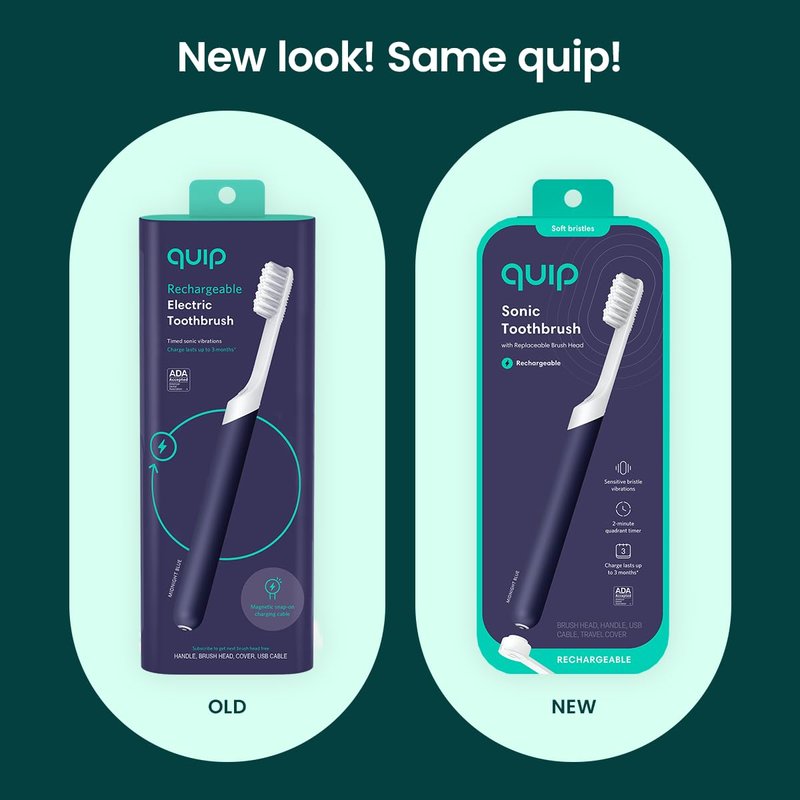 quip Rechargeable Electric Toothbrush - Soft Bristle, Sonic Toothbrush with Magnetic Charging Cable & Habit Improving Timer - ADA Accepted Electric Toothbrush - Travel Toothbrush - Midnight, Plastic