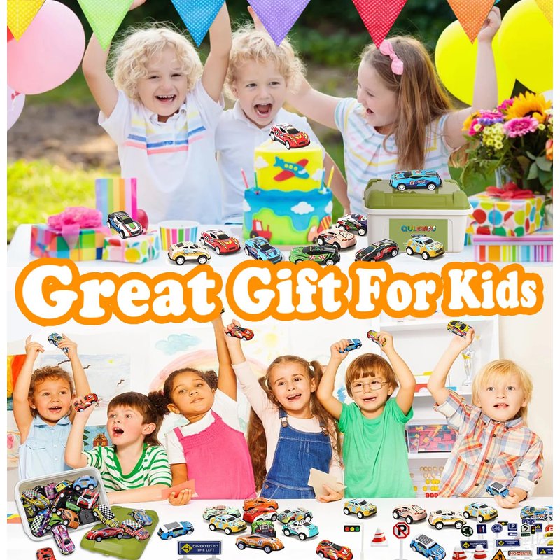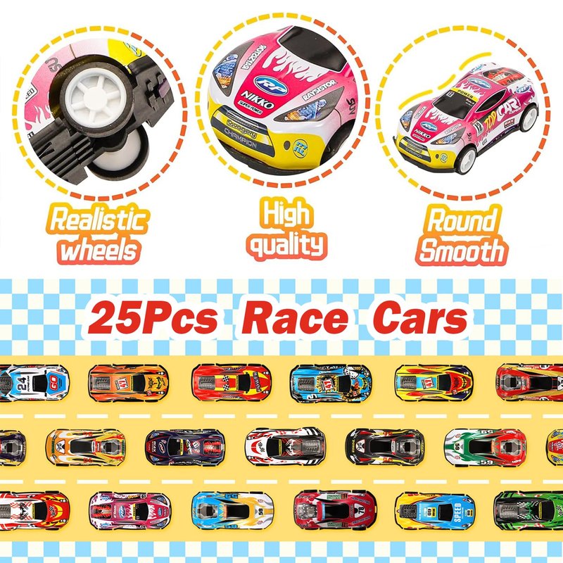 QULEWUU 25 Piece Metal Pull-Back Kids Toy Cars Set, Mini Race Cars and City Vehicles, Friction-Powered Die-Cast Models for Kids, Toddler, Boys, and Girls Educational Play