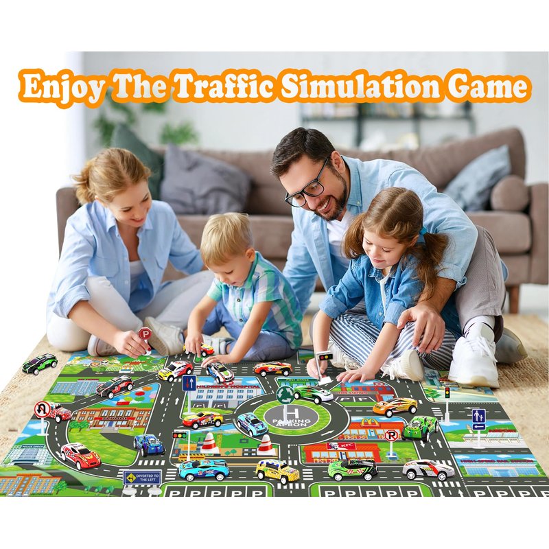 - Rich Variety of Vehicle Choices: Curated with 25 toy car models, including school buses, fire trucks, sanitation vehicles, and traffic jams, allowing children to experience a diverse and colorful joy of playing with cars.