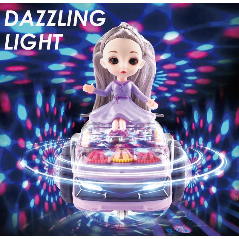 2.4G remote control car for girls, Lights up Gear Toys with a Doll Spinning Toys Gear Toys