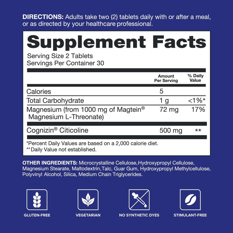 Qunol Brain Health Memory Plus, Magnesium L-Threonate & Citicoline, Clinically Tested Ingredients to Improve Memory, Focus, Attention and Productivity, 60 Count (Pack of 1)
