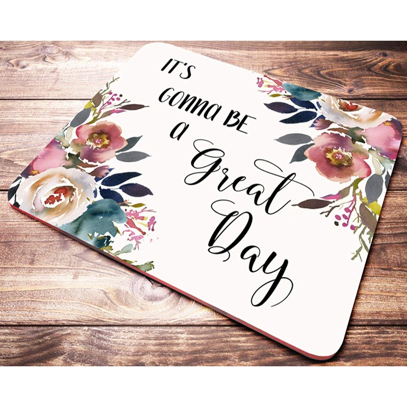 Cute and trending Inspirational and Motivational Quote "It's Gonna Be A Great Day" Watercolor Floral Mouse Pad. Enjoy your time spent on the computer with a great mouse pad ! It's a perfect gift for yourself, family members, teachers, best friends and coworkers. The Mouse Pad has a Polyester top with design, printed in sublimation printing technology. The backing is black rubber to prevent slipping. Don't use chemicals to clean it. Designed and printed in the USA.