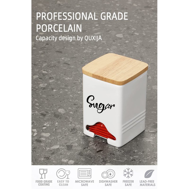 QUXIJA Ceramic Sugar Packet Holder, Farmhouse Tea Bag Storage Organizer Caddy Holder with Lid
