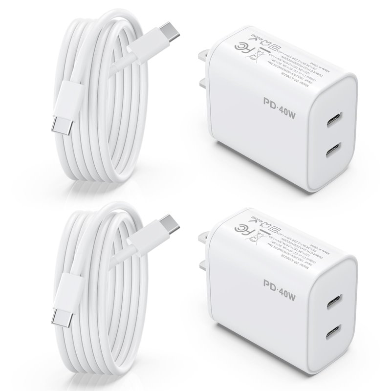 Upgrade your charging experience with this 2-pack of 40W USB-C chargers and 6ft USB-C to C cables. Designed for the latest iPhone 16 15 series, iPad, and other USB-C devices, these compact chargers deliver blazing-fast charging speeds. The dual ports allow you to charge two devices simultaneously, saving time and space. The included 6ft cables provide ample length for convenient use. With their sleek design and reliable performance, these chargers are a must-have for anyone on the go. Charge your devices quickly and efficiently, anywhere, anytime.