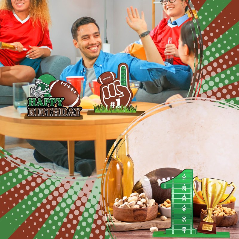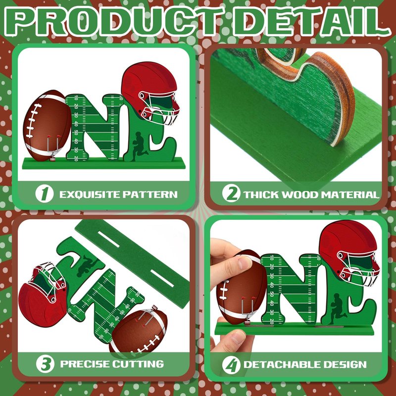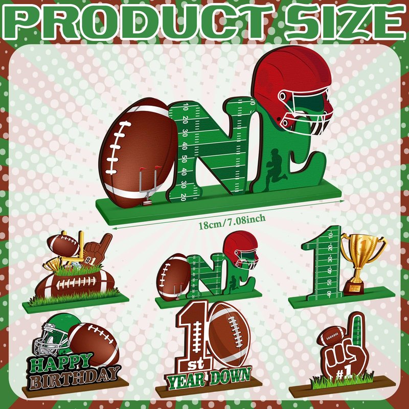 - Football 1st Birthday Centerpieces Set: the package includes 6 wooden football centerpieces in 6 different styles, enough to meet your decoration needs; Add a vibrant touch to your environment with these football wooden decorations
