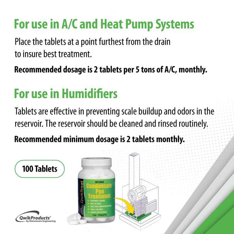 QwikTreat Condensate Pan Treatment Tablets, AC Drip Pan Tablets Air Conditioner Drain Line Cleaner, Control Odors, Overflow and Water Damage, 100 Tablets