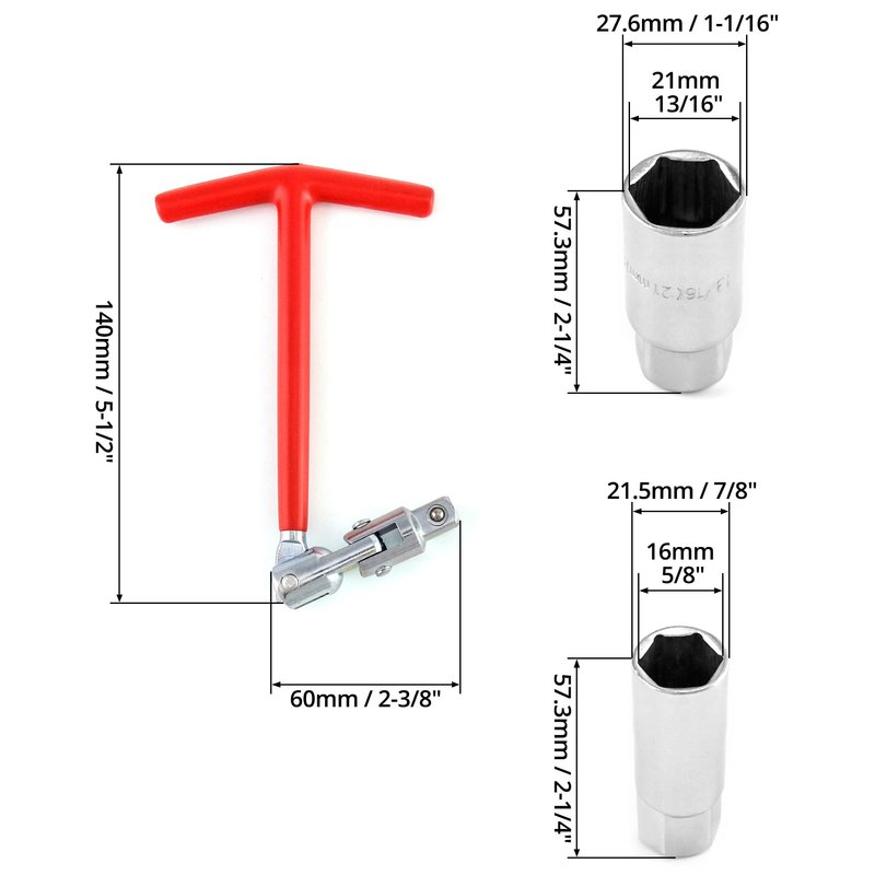 - Fit:Comes with two sockets, fit for 5/8 inch (16 mm) and 13/16 inch (21 mm) hex spark plugs.