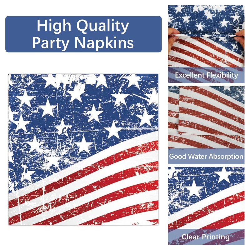 - 【4th of July Party Tableware Set】100 pieces patriotic party dinnerware set, including 50 paper plates of two sizes, 25 American Flag birthday napkins, and 25 forks. This set includes everything you need for up to 25 guests, making it the perfect choice for your 4th of July birthday party.