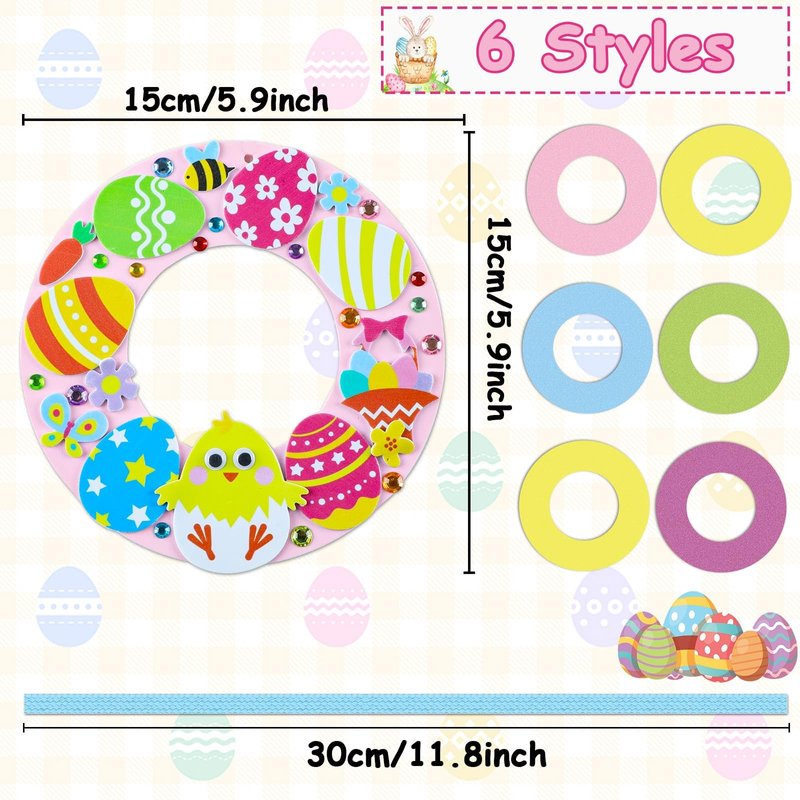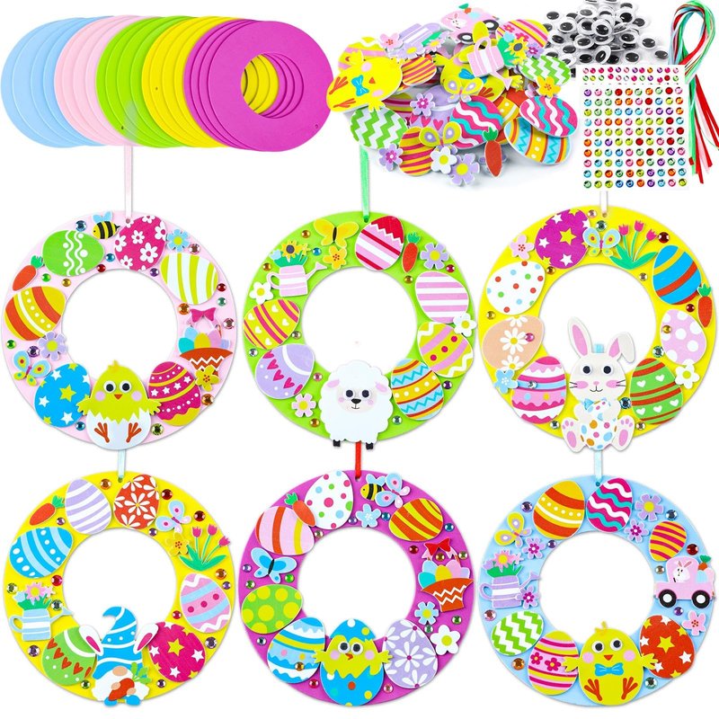 Enjoyable Easter egg craft kit: Engage kids in spring Easter DIY crafts to spark creativity and imagination. These Easter wreath foam craft can let children enjoy DIY time with family or students and create special crafts.