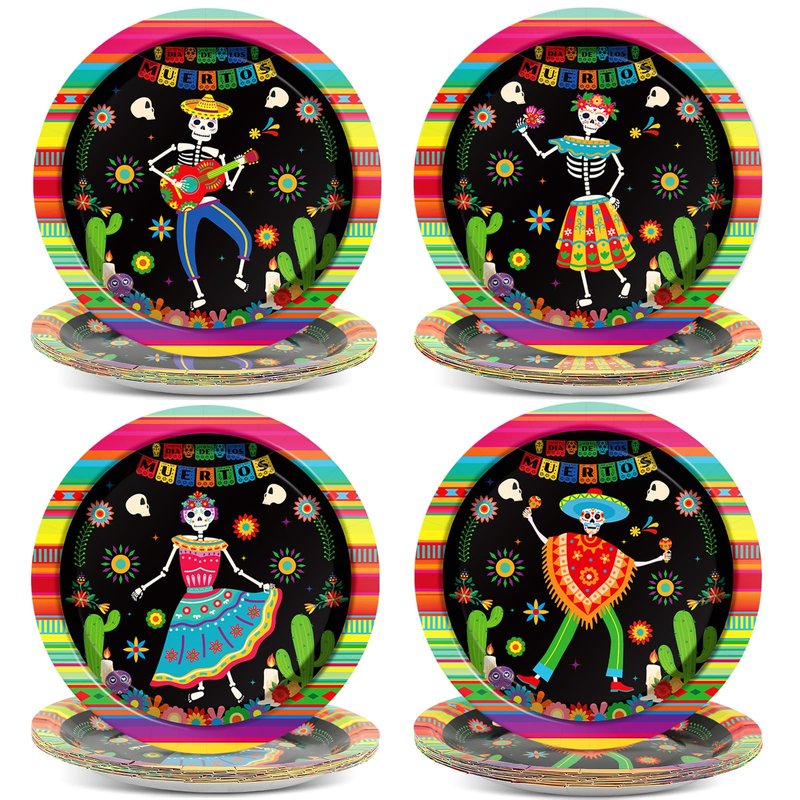 - Delicate design: Our Day of the Dead dinner plates designed in 4 different styles with classic festival elements, such as sugar skull, Mexican banners, colorful flowers and more. The Mexican fiesta skull party decorations will create d a strong festival touch to your events.