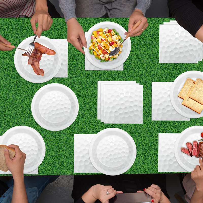 - Package included: You will receive 1 pc of green grass tablecloth, 24pcs of 7 inch golf party plates, 24pcs of 6.5 inch golf themed party napkins, each set can serve 24 guests. There are golf party supplies for boys or girls to help you make great memories.