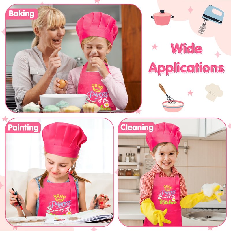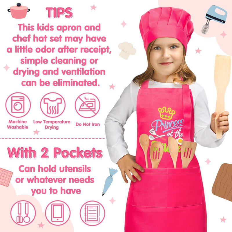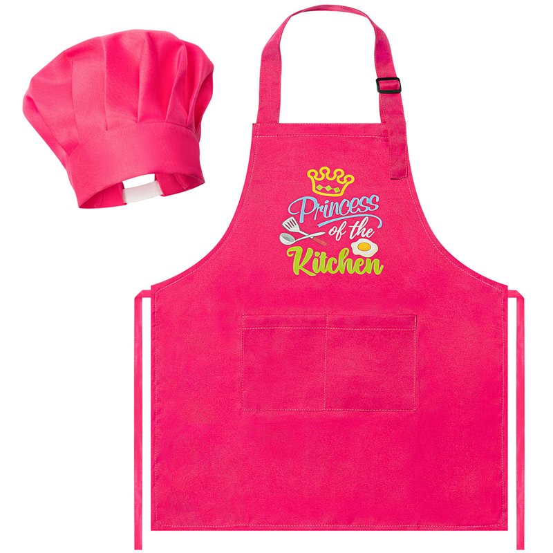 - EXQUISITE PATTERNS: Featuring delightful food designs and the words "Princess of the kitchen," our children's aprons and chef hats are adorned with high-definition prints that truly come to life. These designs are perfect for both boys and girls with a love for cooking.