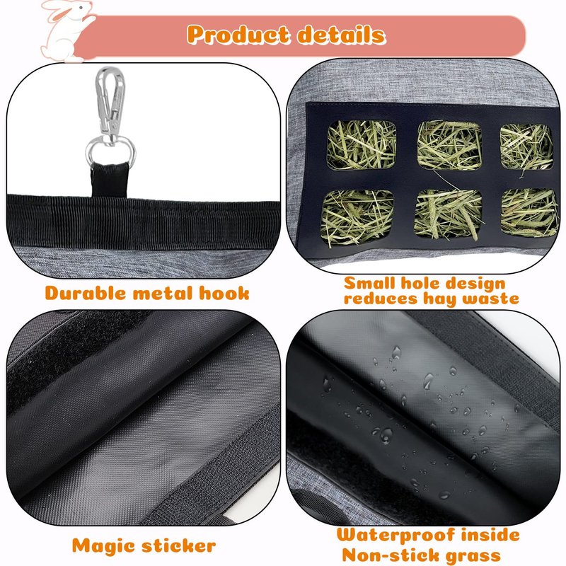 - [High-Quality Material]: The bunny hay feeder bag is made of high-quality Oxford fabric and PU, which is strong, durable, and resistant to wear,to prevent small animals from tearing it apart,to some degree, ensuring long-lasting use.