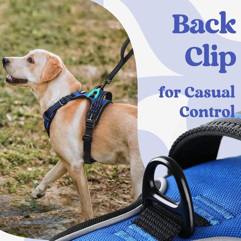 - The no-pull dog harness has two metal leash attachment points for various conditions which allows it to be used for a variety of activities like daily walking, jogging, running, trekking, hunting, and training. Furthermore, the ergonomic top handle may be handy for additional training support or carrying assistance.