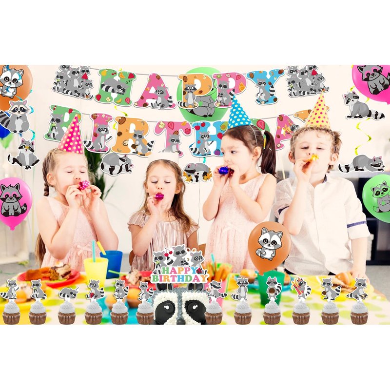 Raccoon Party Decorations Raccoon Birthday Party Supplies Includes Raccoon Birthday Banner Spirals Cake Topper Cupcake Toppers Balloons For Woodland Raccoon Birthday Party Baby Shower Decorations