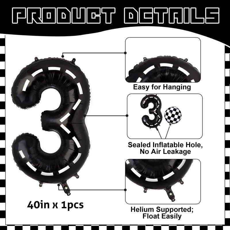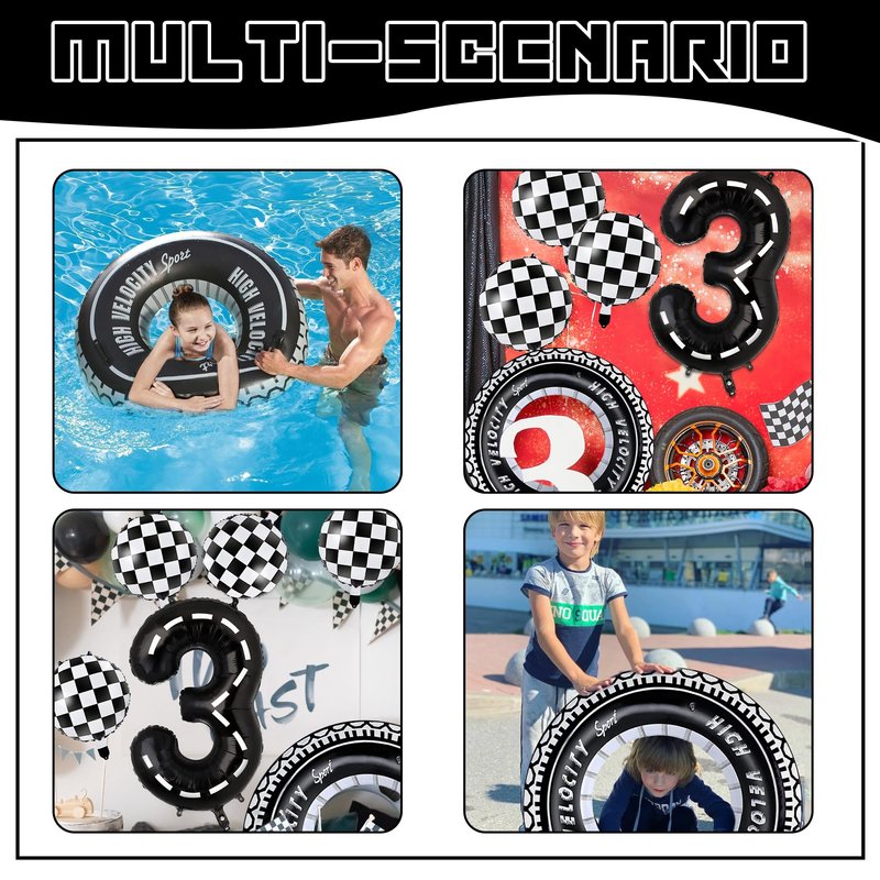 - Stylish Race Car Balloons Set Combination : You will get a giant foil 40 inch road line race car number balloons,2 pcs thicken and big tire tubes and 4 pcs 18 inch classic checkered balloons.If you and kids are a racing enthusiast, you can't miss this race car balloons set for the themed birthday party. Bright classic elements will create a racing-themed atmosphere for car themed party decorations
