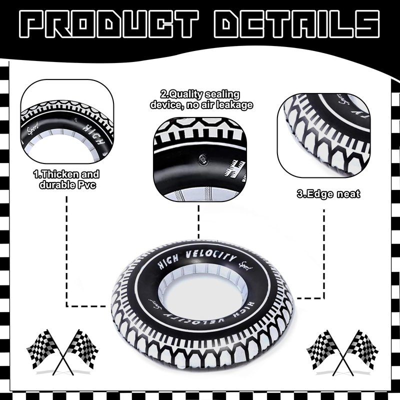 - Multi Usage for Party Games or Decorations : You can use tire tubes to run tire races or hold a hoop game,moreover the tire tubes can be used as pool rings for swimming.The race car number party balloons will seal automatically after inflation.Each foil balloons have hole on the top and bottom,easy to hang and place.The racetrack balloons will float perfectly when filled with helium.The car balloons set are great core point for the party decorations