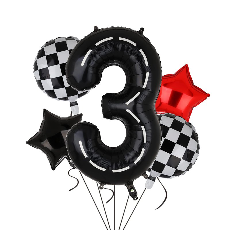 - Package/Size: 1 pcs 40 inch racecar number balloon 3,2 pcs black and white chequered balloon,2 pcs star balloon,1 pcs ribbon.