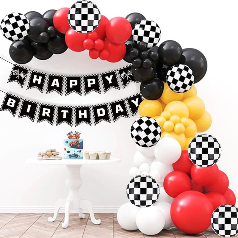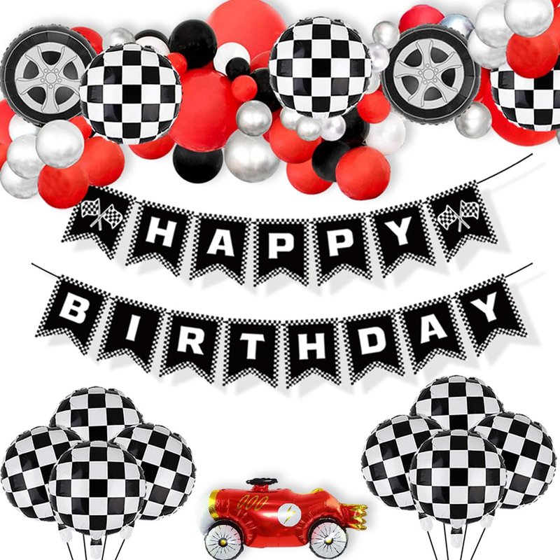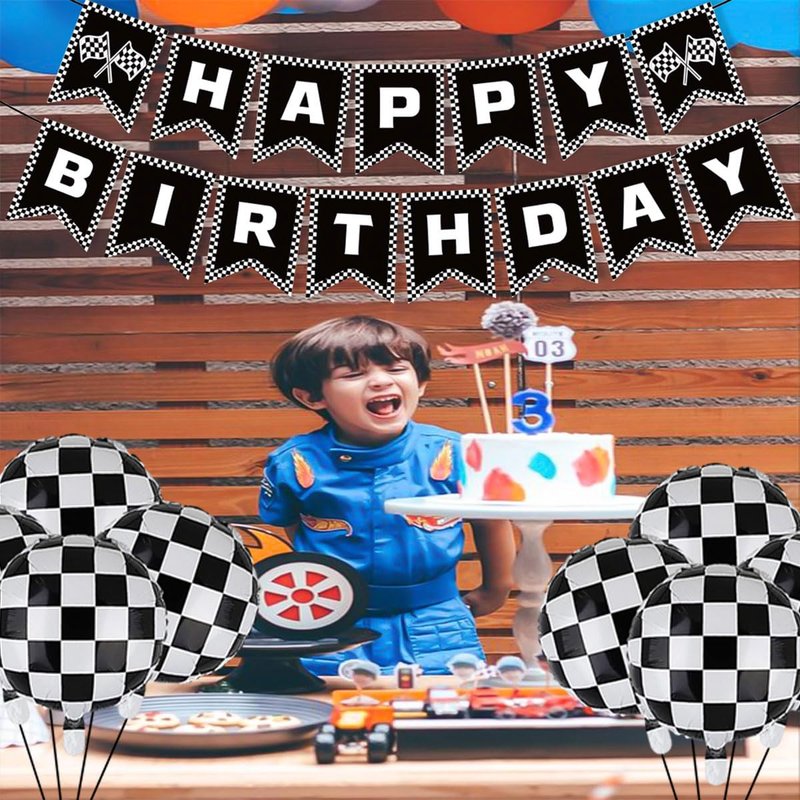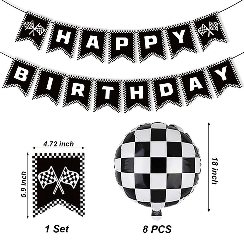 - Racing Birthday Party Banner: Celebrate your birthday party with these beautiful checkered flag birthday banner, black and white checkered balloons decor it will wow to make great memories for boys and girls and earns compliment from your friends and families.