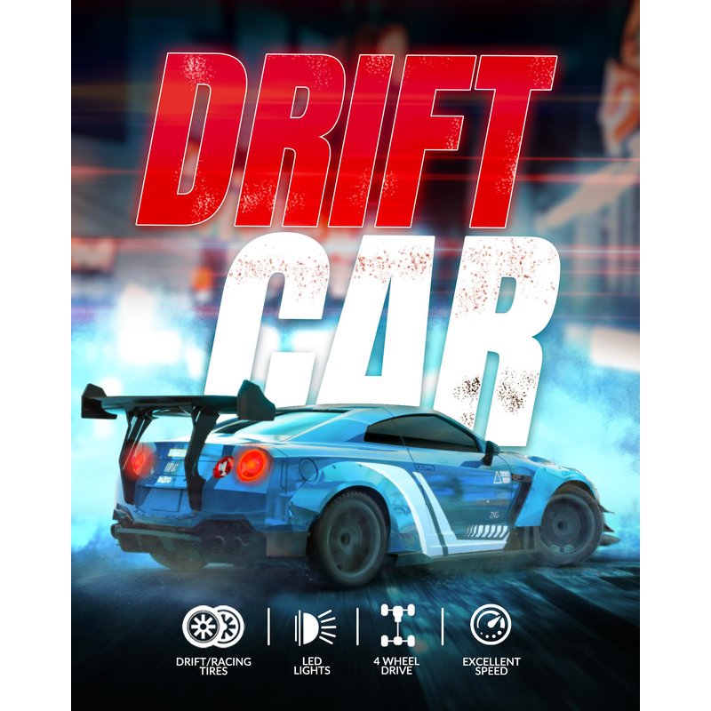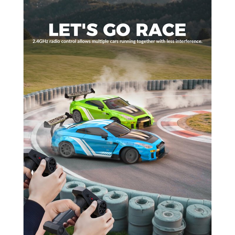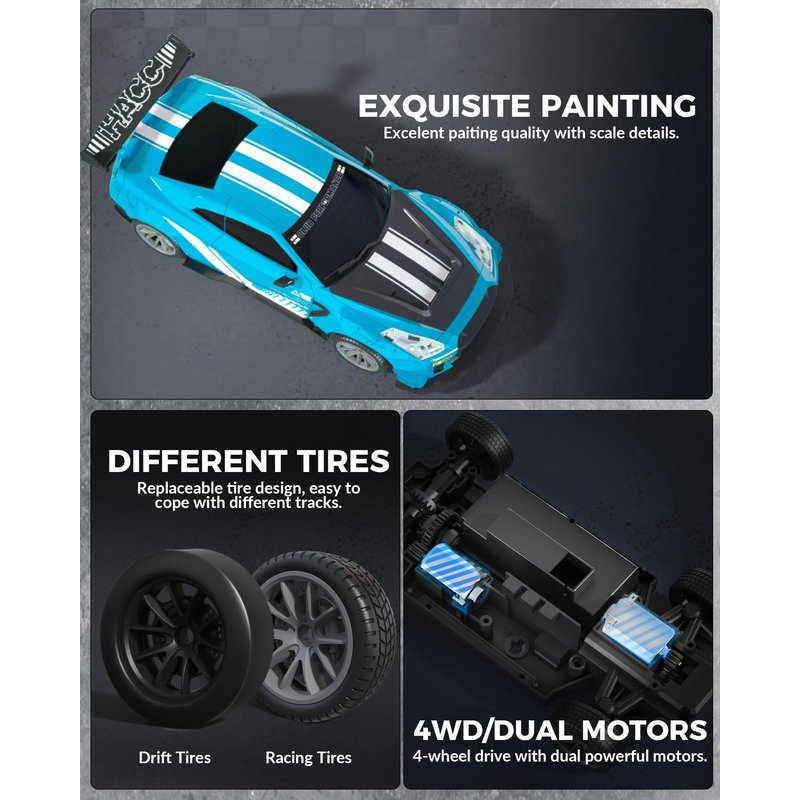 RACENT RC Drift Car, High Speed Remote Control Car, 4WD RC Cars with LED Light, Racing and Drifting Wheels, 2 Batteries, Toy for Boys, Girls, Kids (Blue)